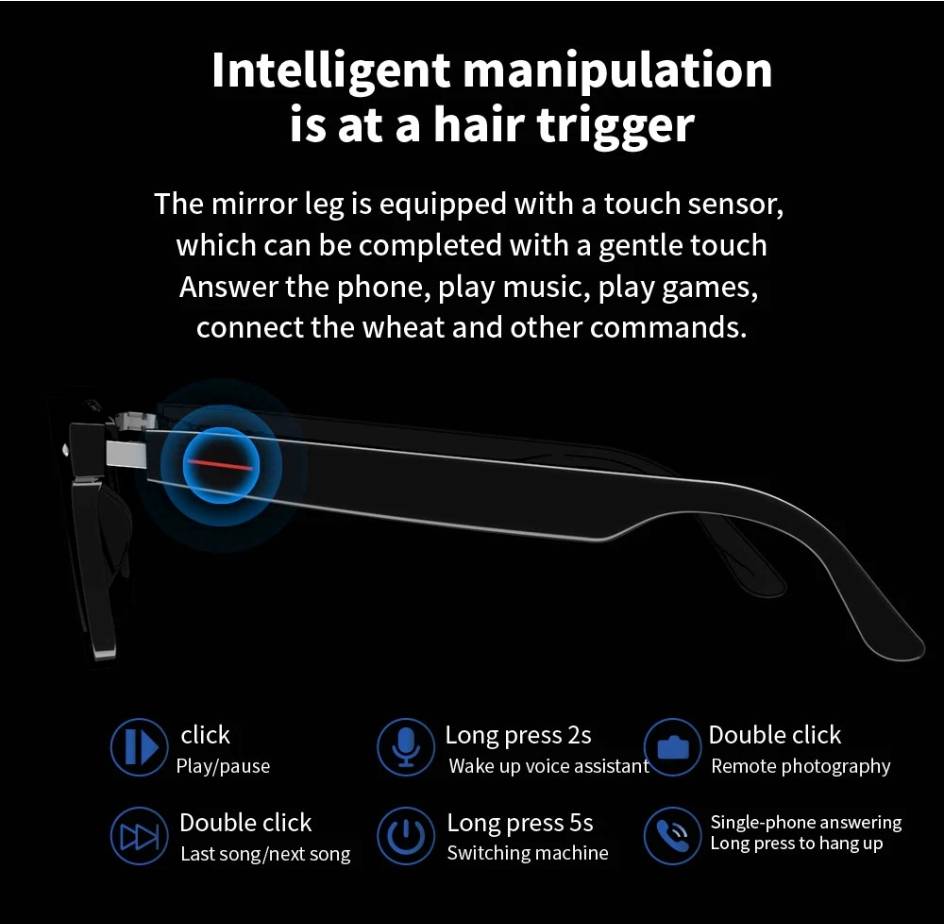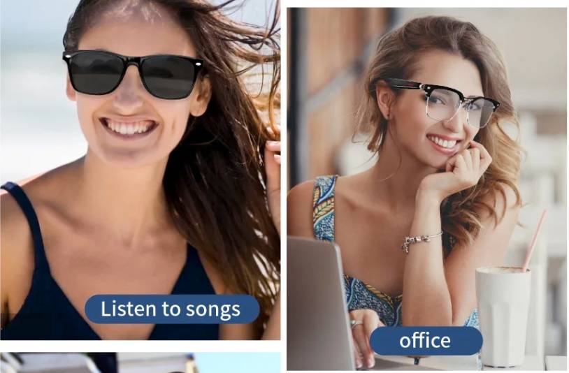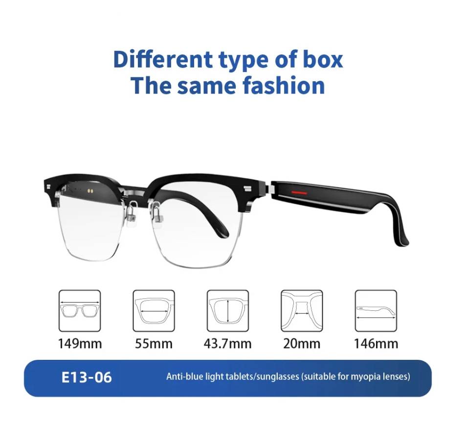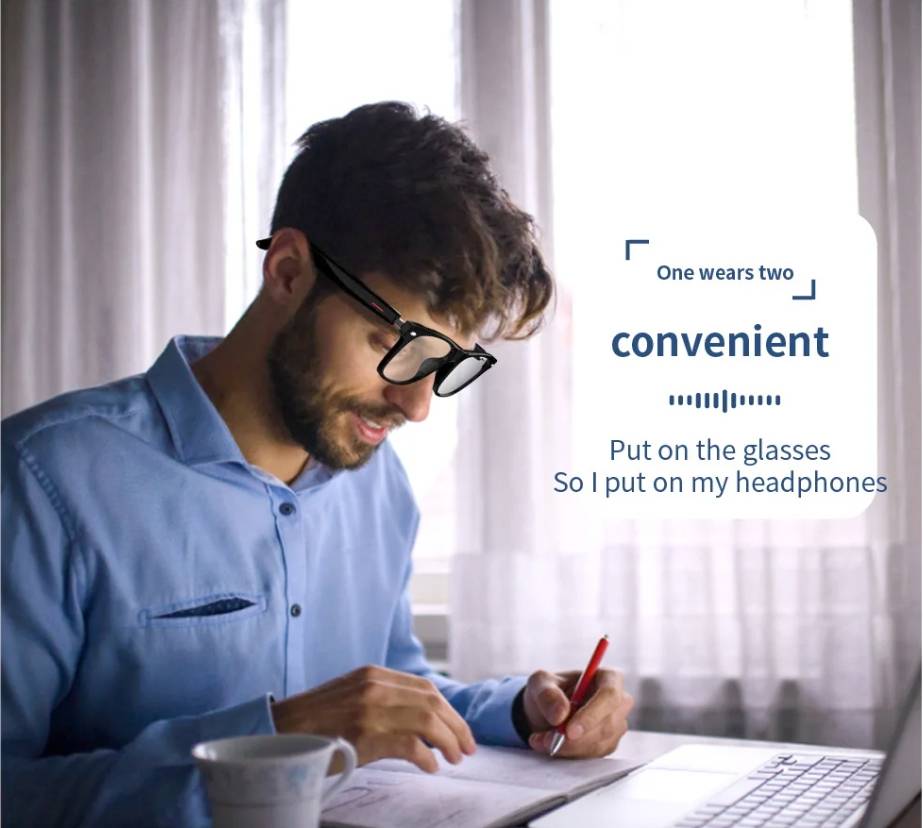 2 In 1 Headset Smart Glasses Blue Tooth Audio Call AI Voice Noise Reduction Music Eyewear Waterproof Speaker Mics Calls Eyeglass