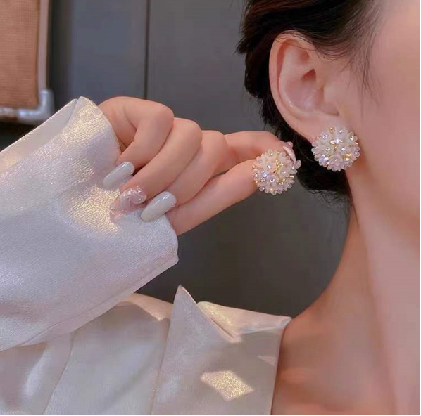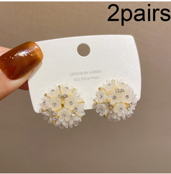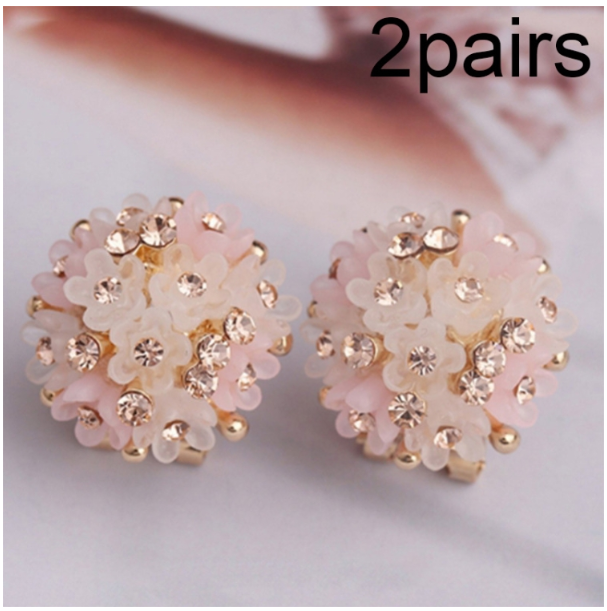2pairs Domed Flower Stud Earrings Elegant Crystal Earrings