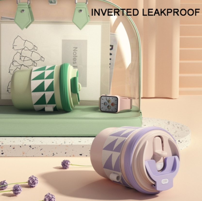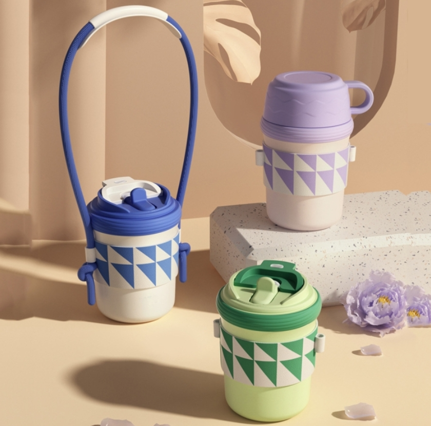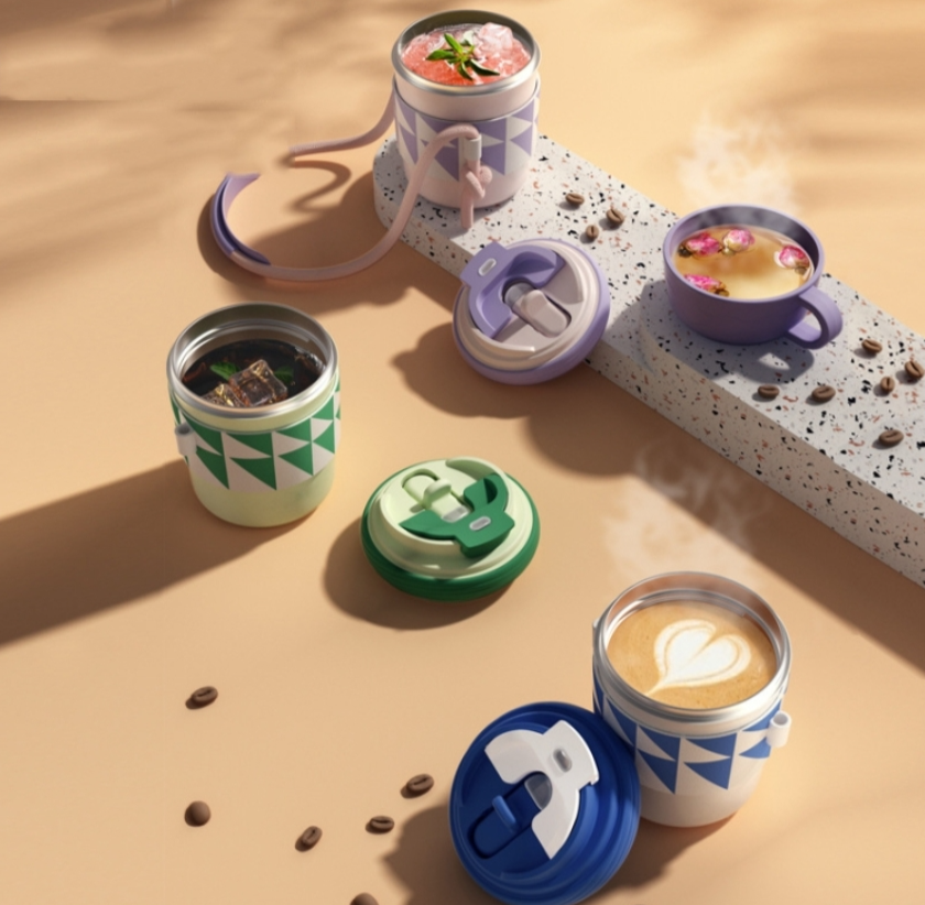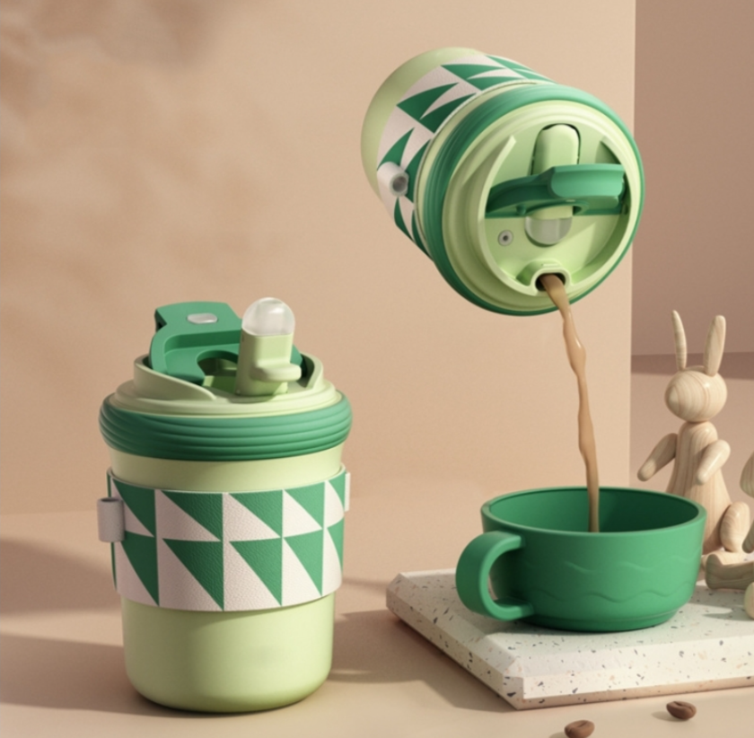 316 stainless steel thermos cup, three-use, double-drinking straw, direct drinking coffee cup