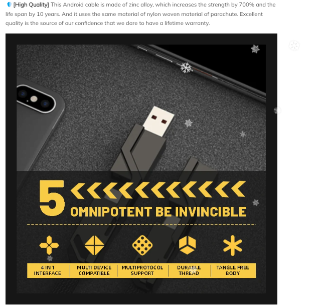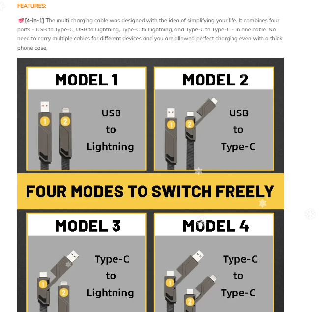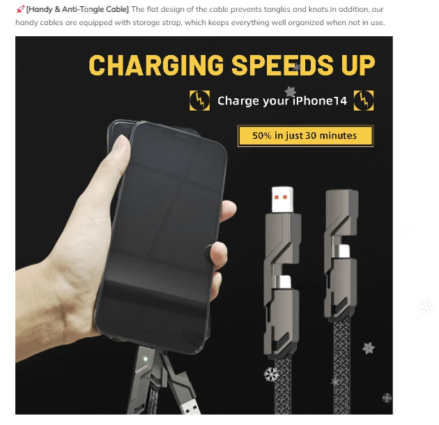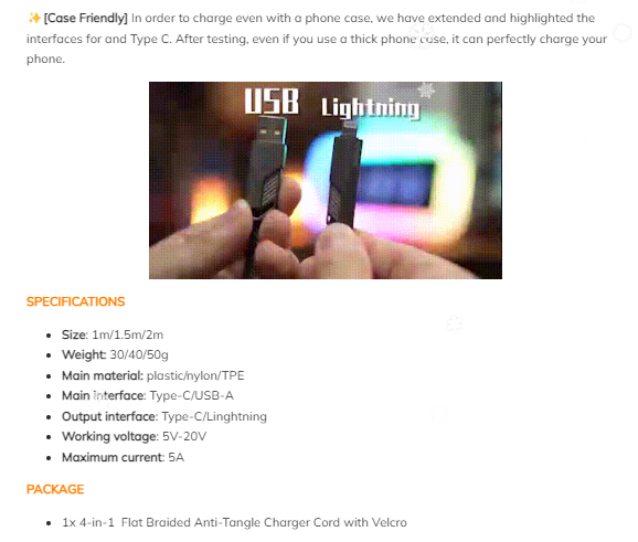 4-in-1 Flat Braided Anti-Tangle Charger Cord with Velcro