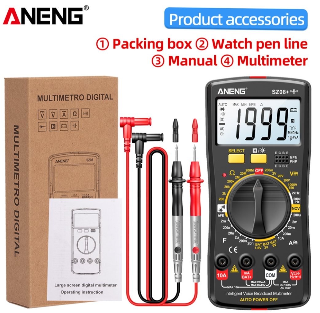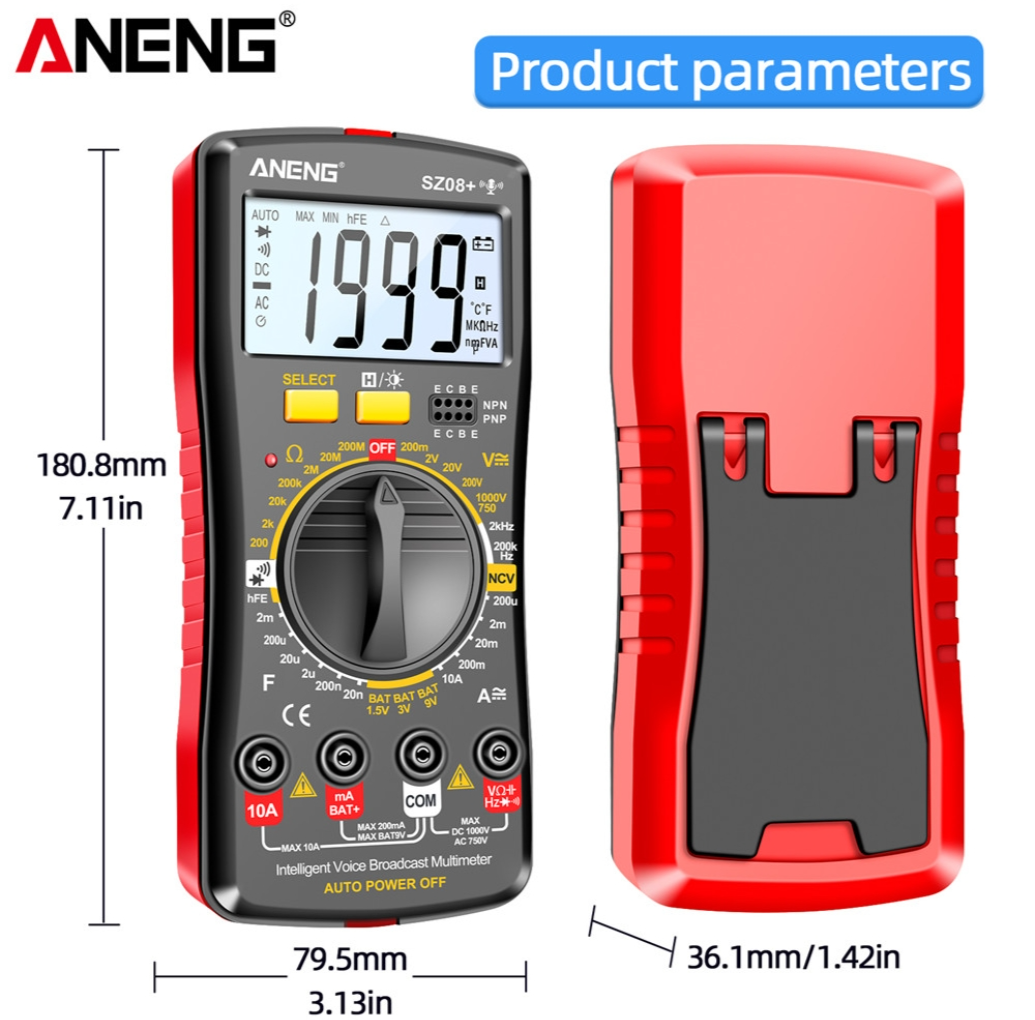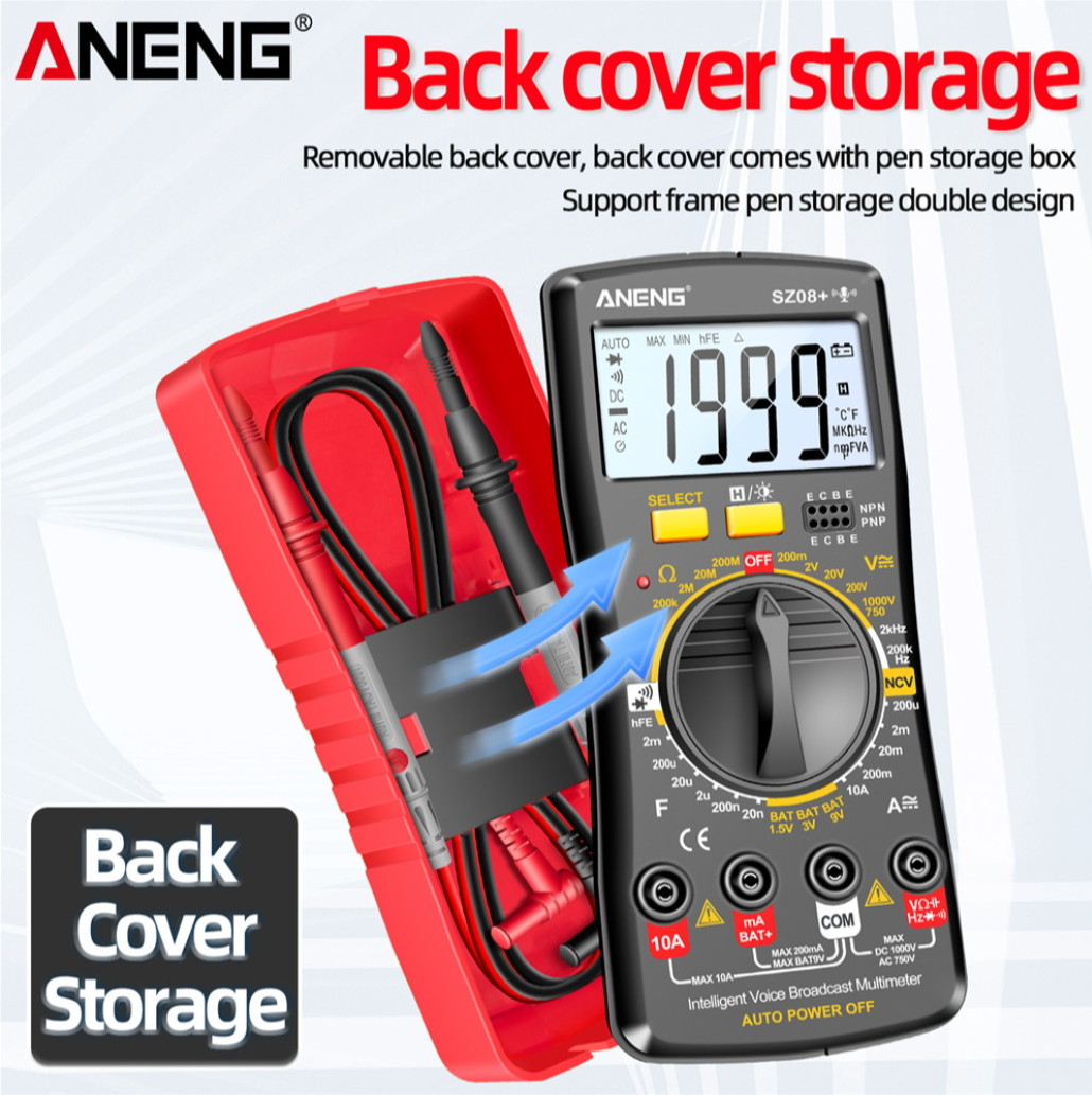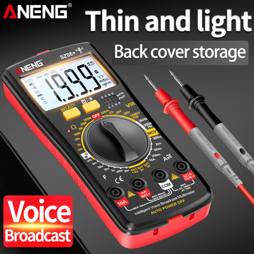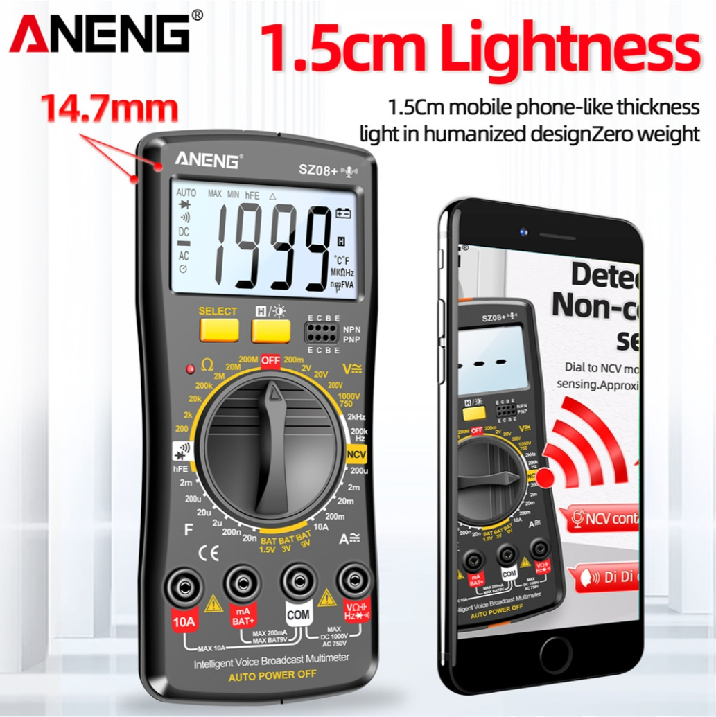 ANENG SZ08 Digital Multimeter Ultra-thin Storage Professional Multimetro Auto Voltmeter AC DC 220V Resistance Handhold Testers - Black