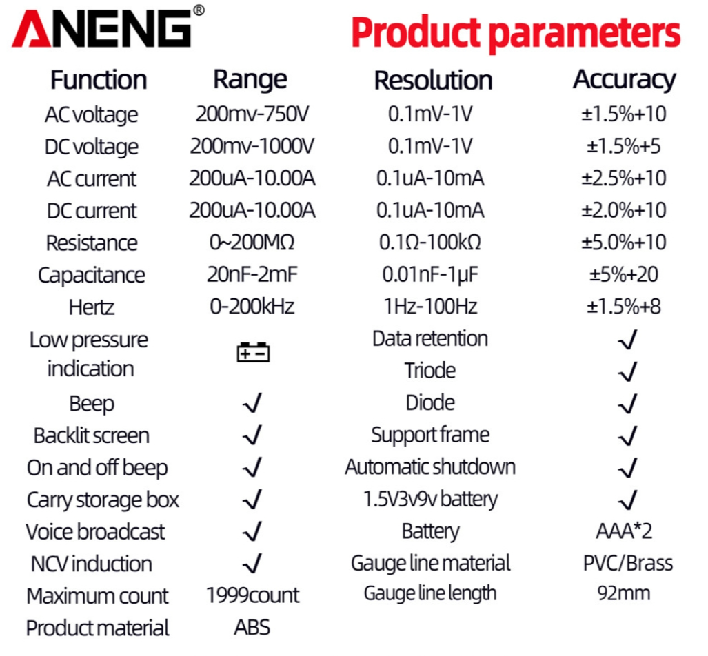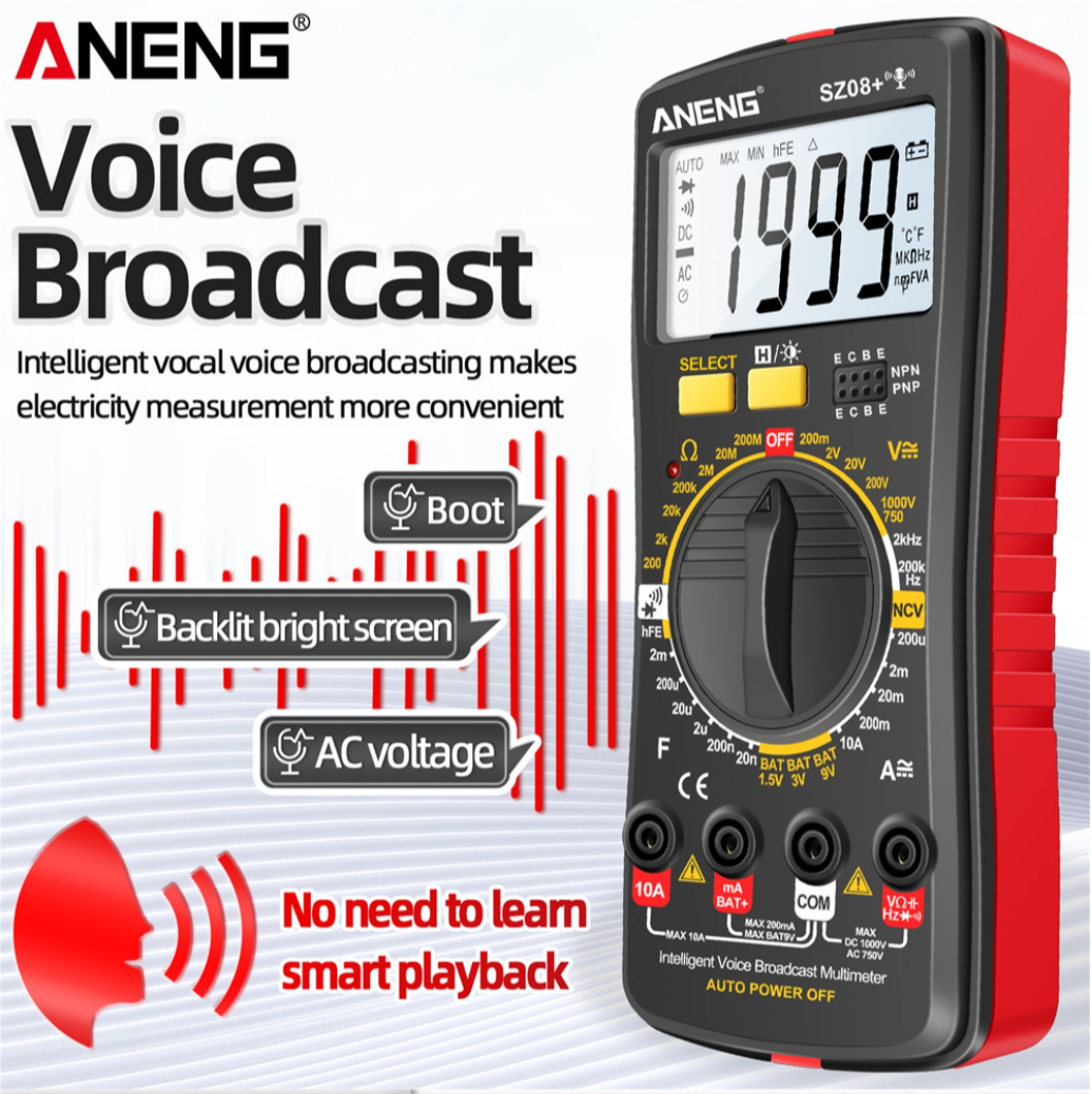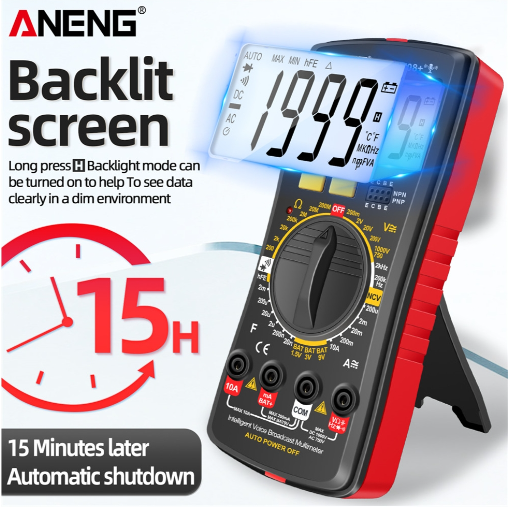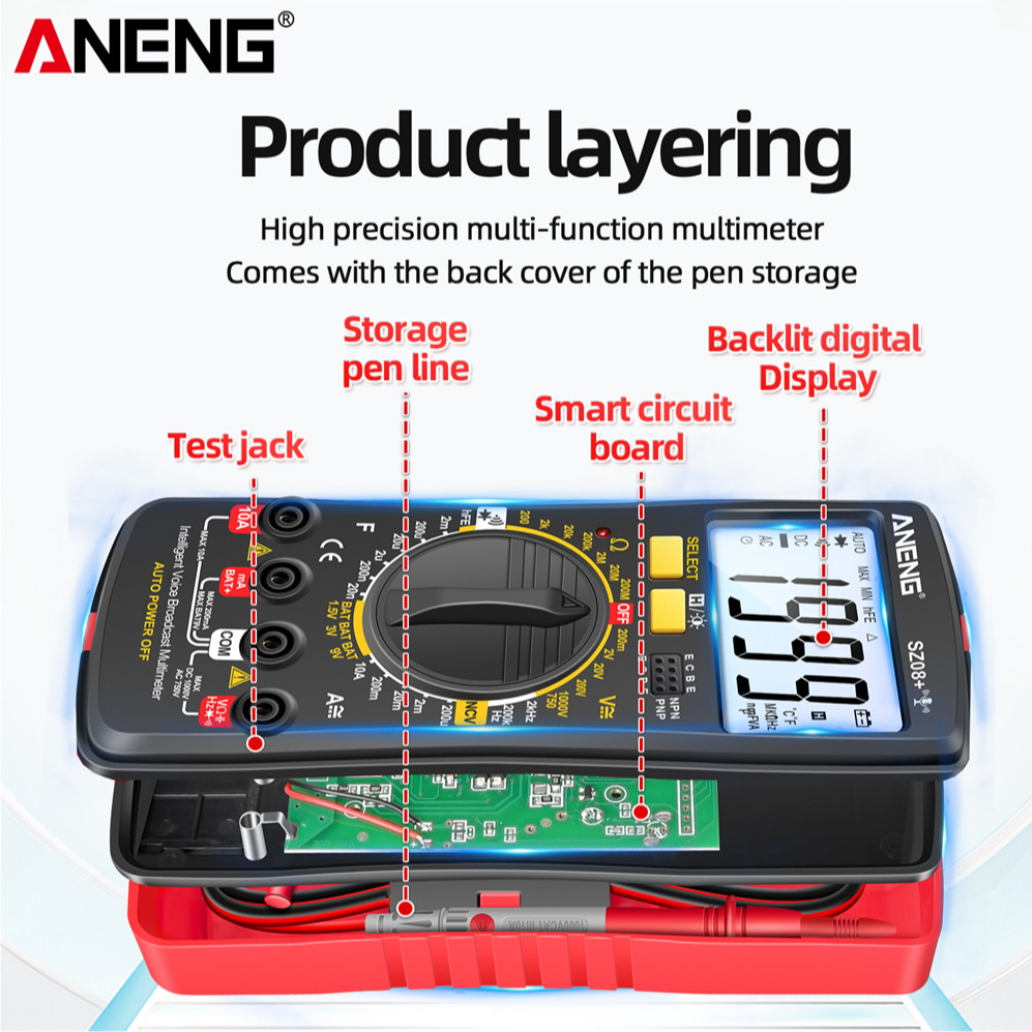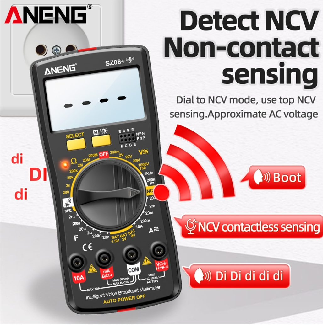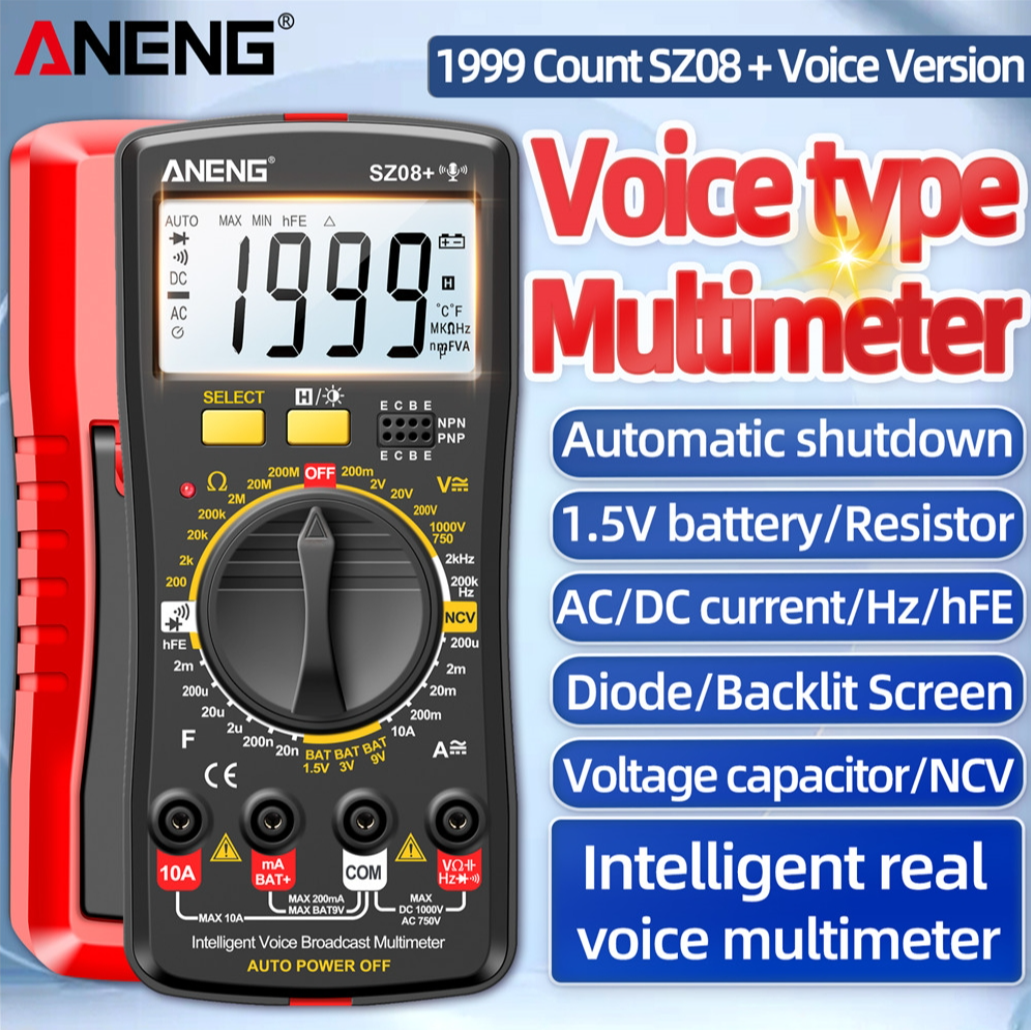 ANENG SZ08 Digital Multimeter Ultra-thin Storage Professional Multimetro Auto Voltmeter AC DC 220V Resistance Handhold Testers - Black