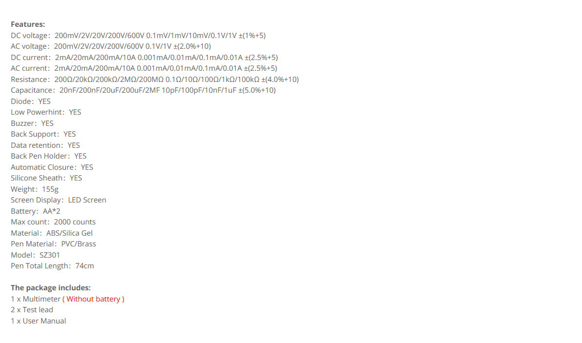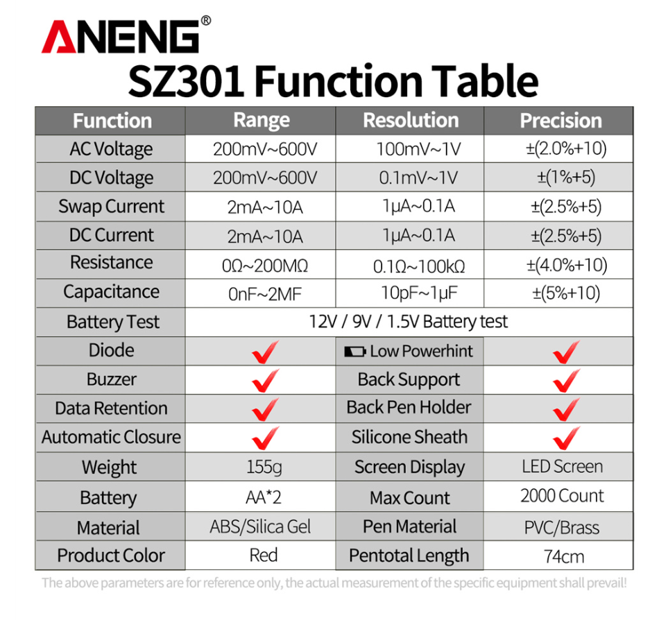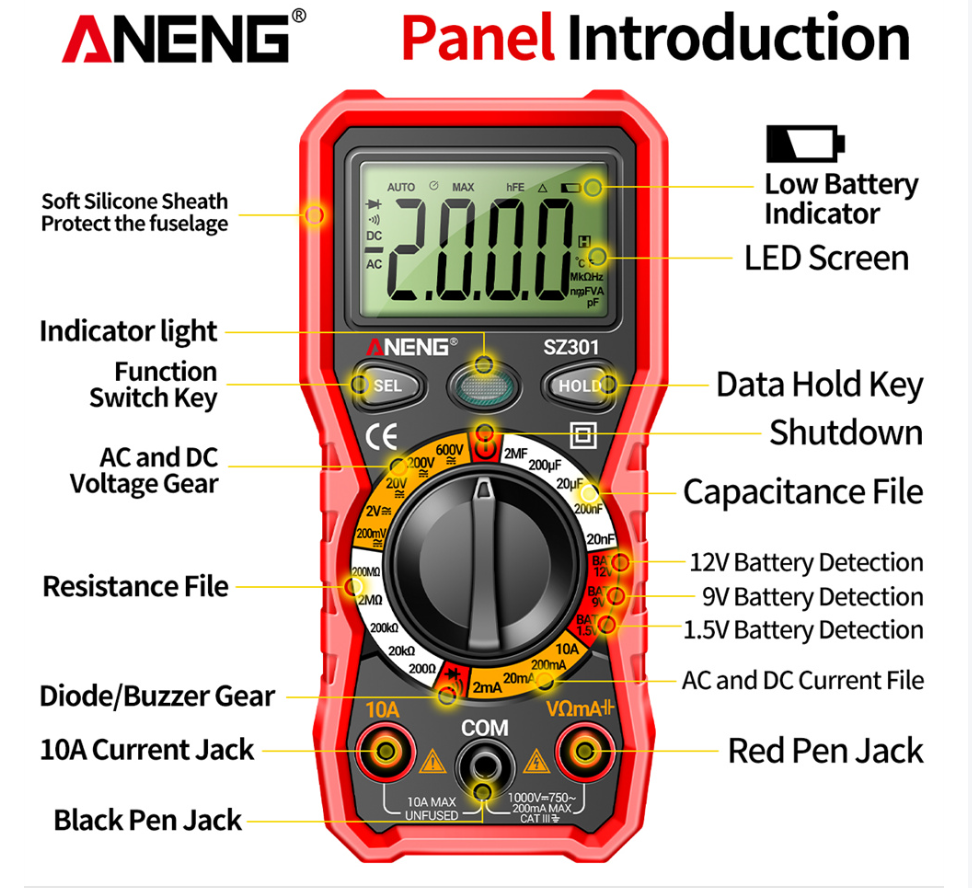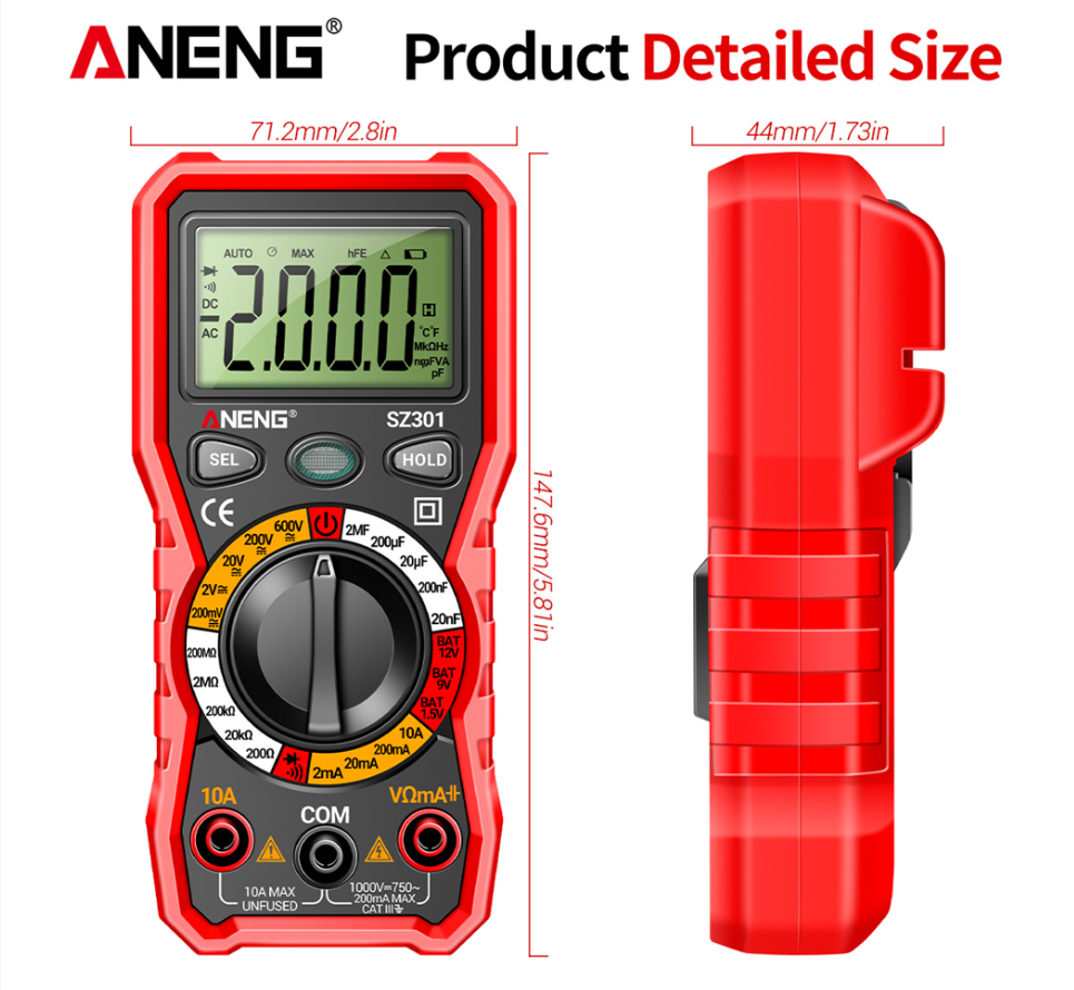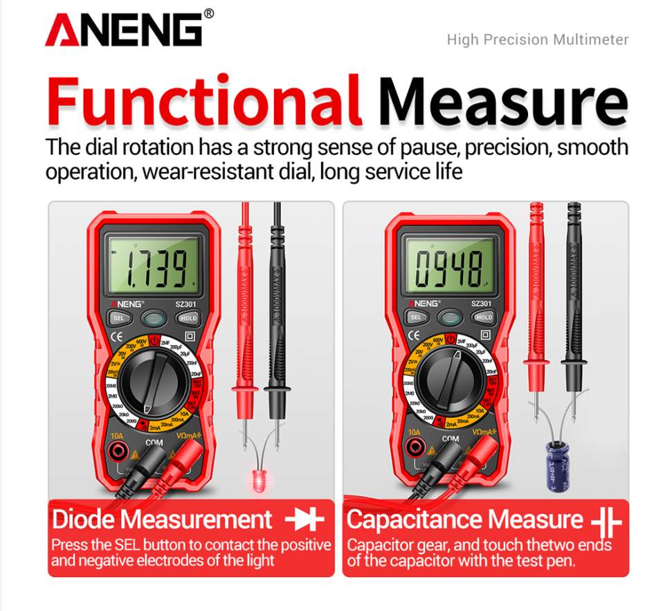 ANENG SZ301 Digital Multimeter AC/DC Votage Current Automatic Tester Electrical Resistance Ohm Ammeter Capacitance Meter