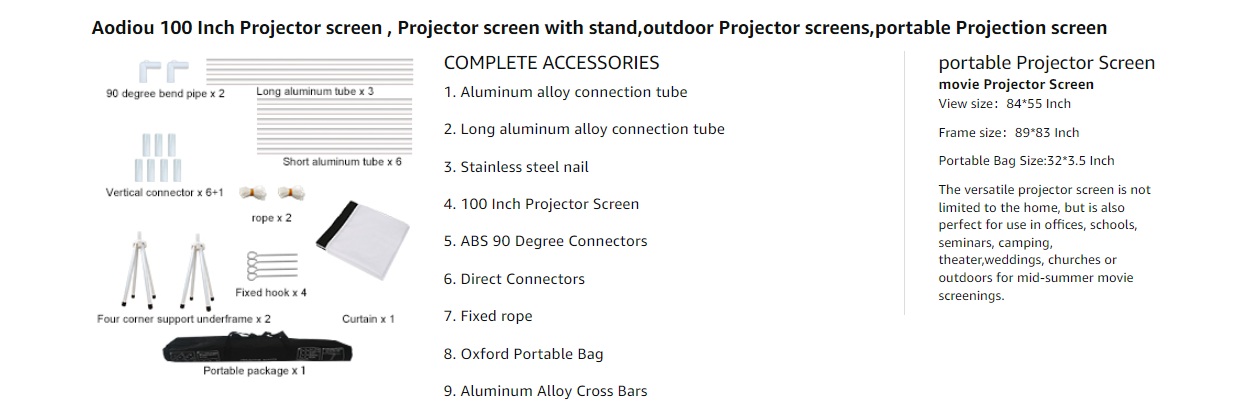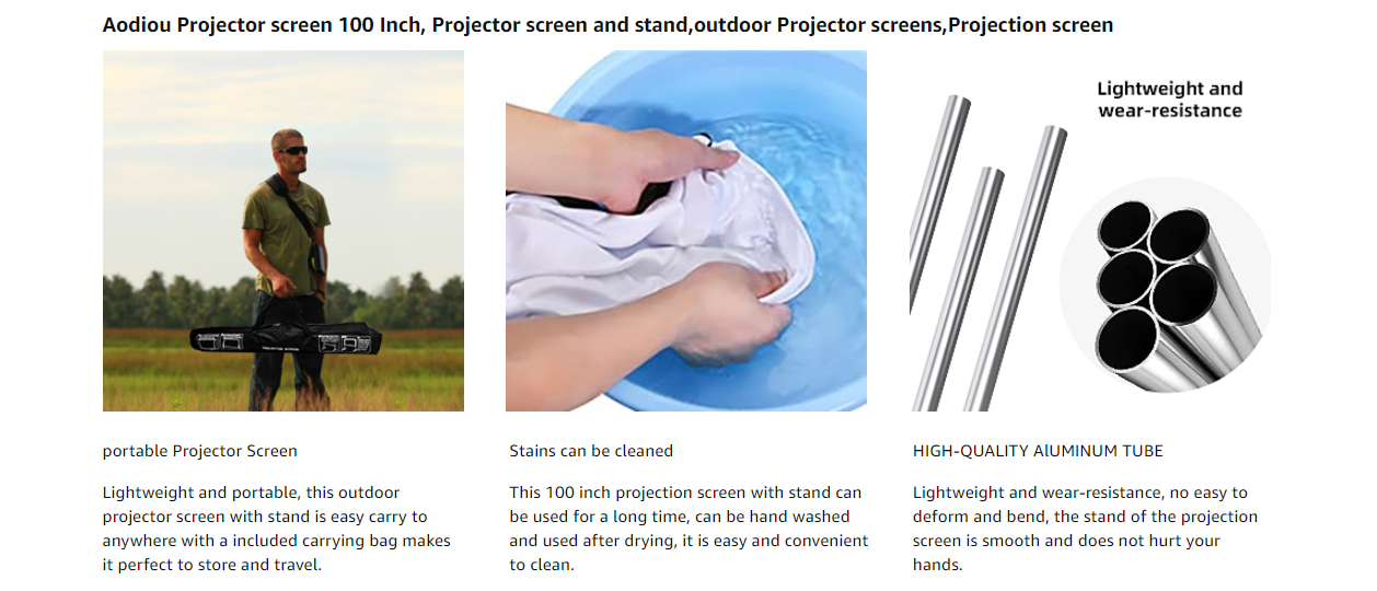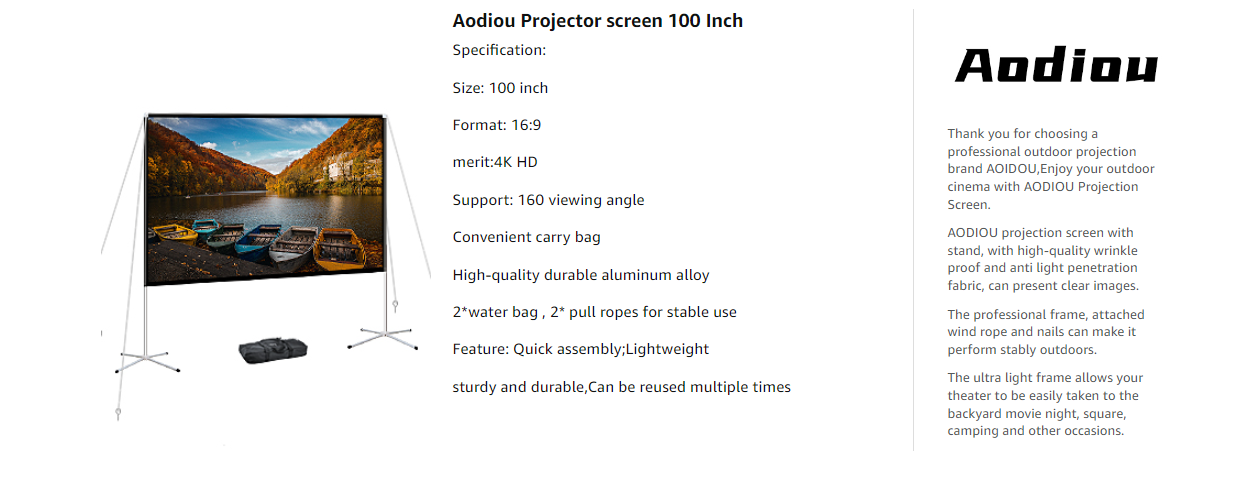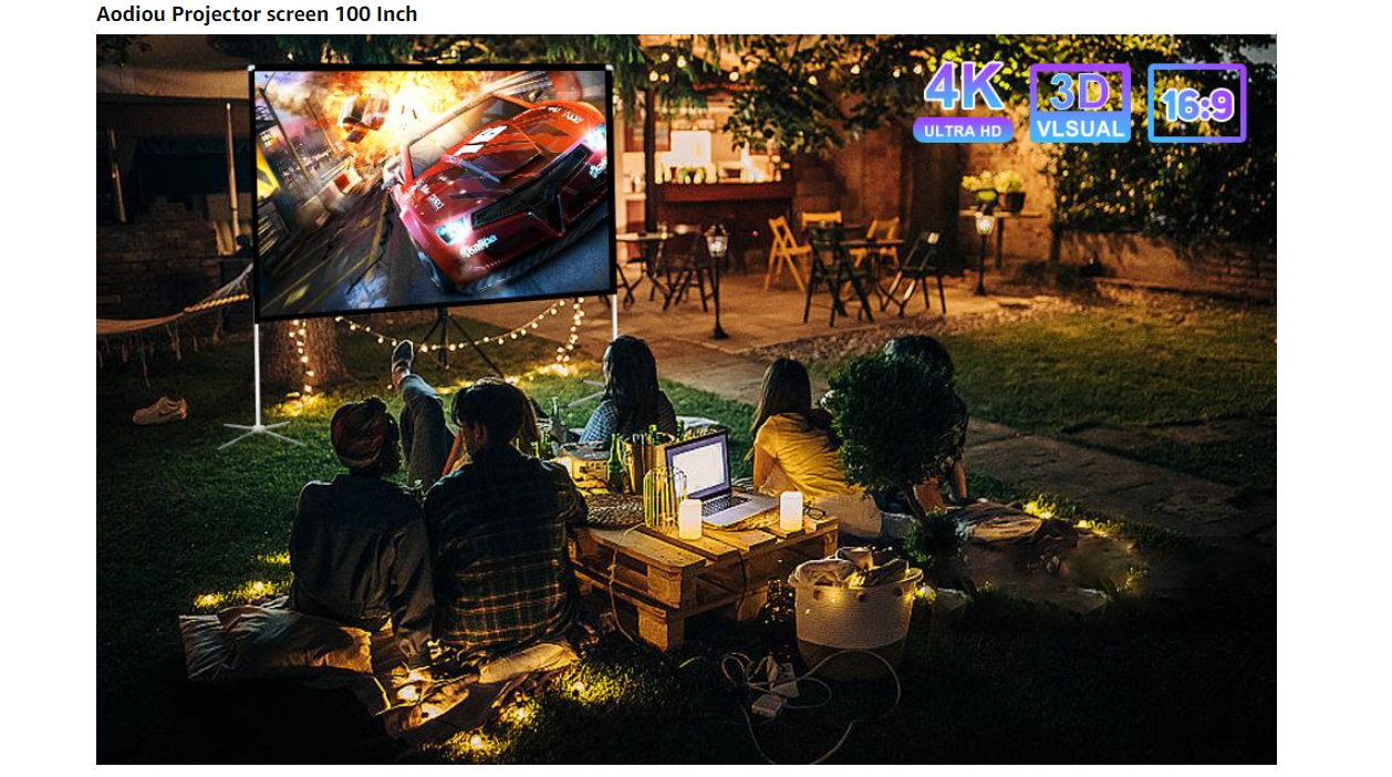 AODIOU Projector Screen and Stand Portable Outdoor