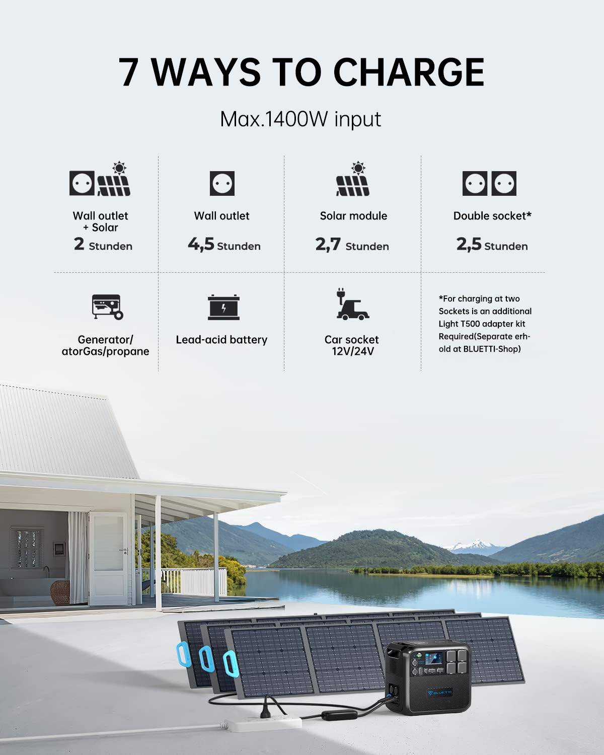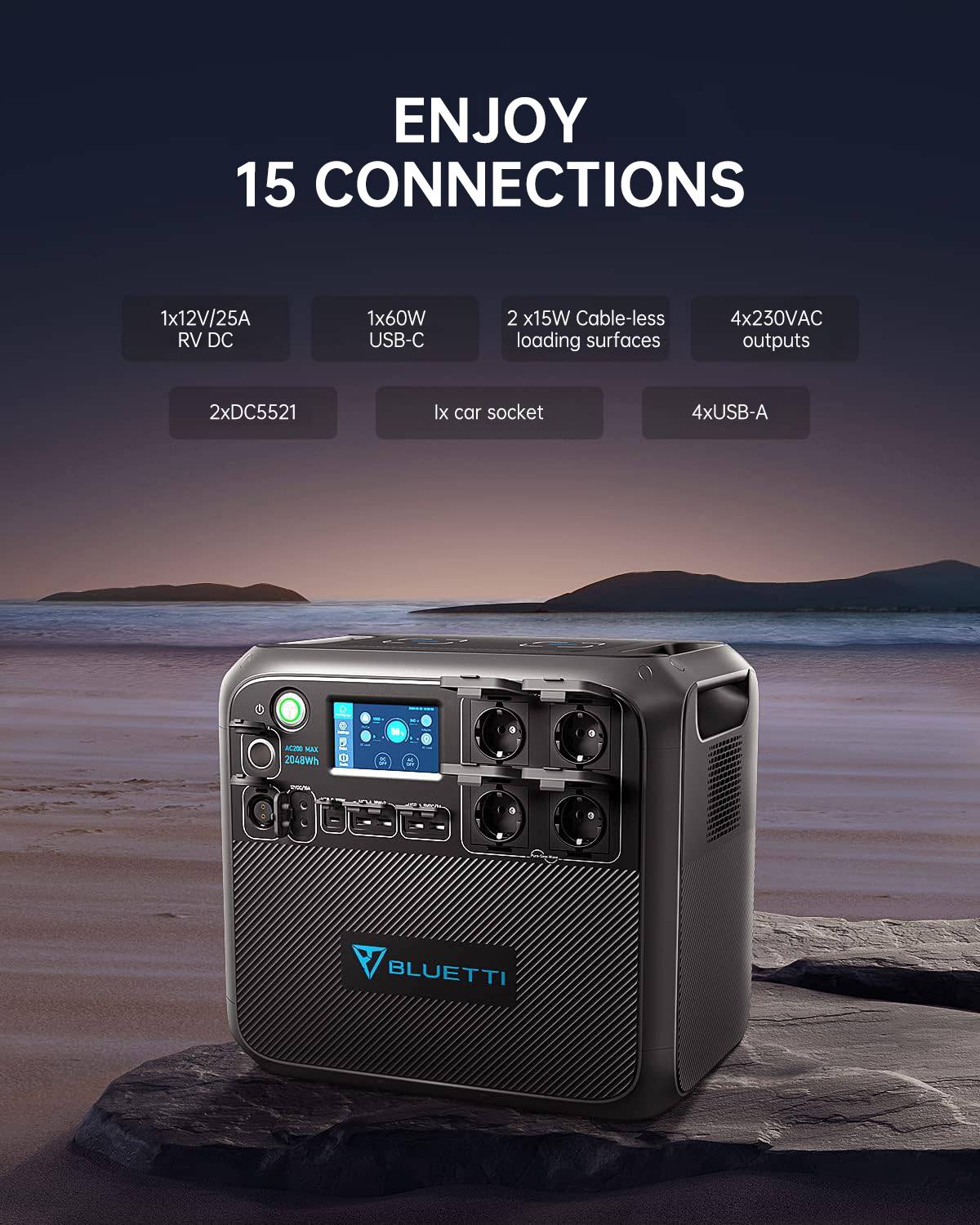 BLUETTI Solar Generator - 2048Wh LiFePO4 Battery Power Station with 4 2200W AC Outlets, Expandable to 8192Wh, Backup Power for Outages and Travel