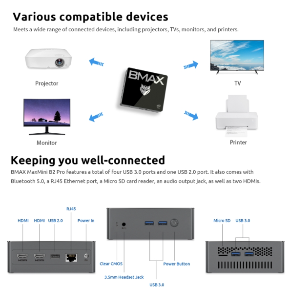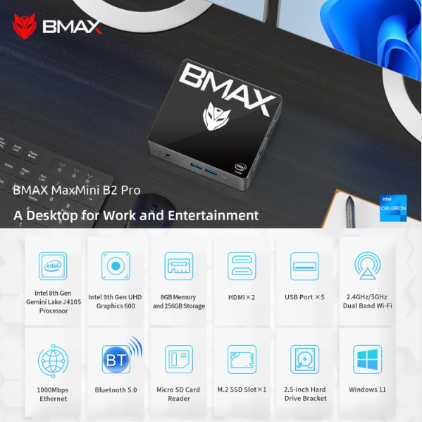 BMAX B2 Pro Windows11 Mini Host Intel Celeron J4105 Processor