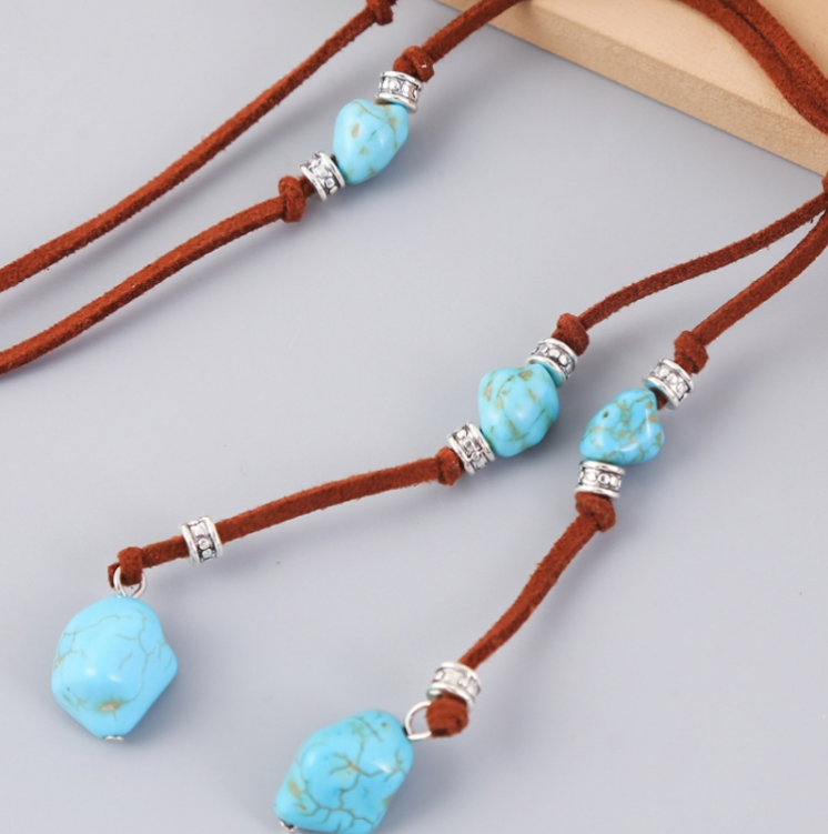 Bohemian Turquoise Natural Stone Sweater Retro Pendant, Model: N2111-14 with Eight Stones