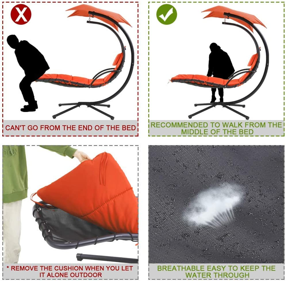 the hanging chaise lounger chair made of powder-coated steel and a rust-resistant finish for a floating Chaise that with stands most weather conditions of the canopy swing Chair.