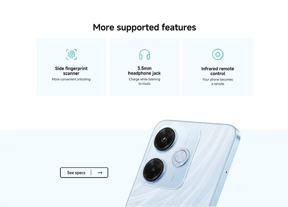 Network bands: 2G: GSM:2/3/5/8 3G: WCDMA:1/5/8 4G: LTE FDD: 1/3/5/7/8/20/28 4G: LTE TDD: 38/40/41 Wireless Networks Wi-Fi: 2.4GHz | 5GHz Supports FM radio (with headphone jack) Bluetooth 5.4