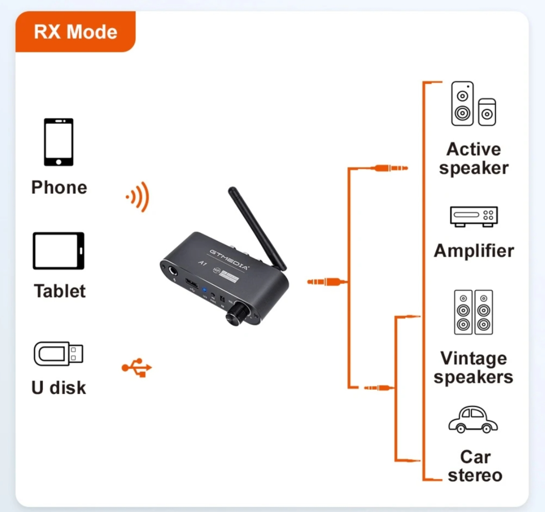 GTMEDIA A1 Bluetooth 5.2 Audio Adapter Receiver Transmitter$19.96