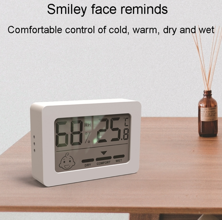 Home indoor mini smiley face electronic temperature and humidity meter with stand