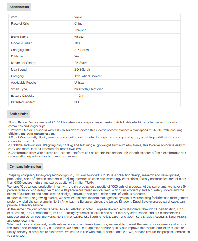 Hot Sale 350W 36V Foldable Electric Scooter J03 with App Long Range Powerful Motor with electricity for Adults in European US Warehouses
