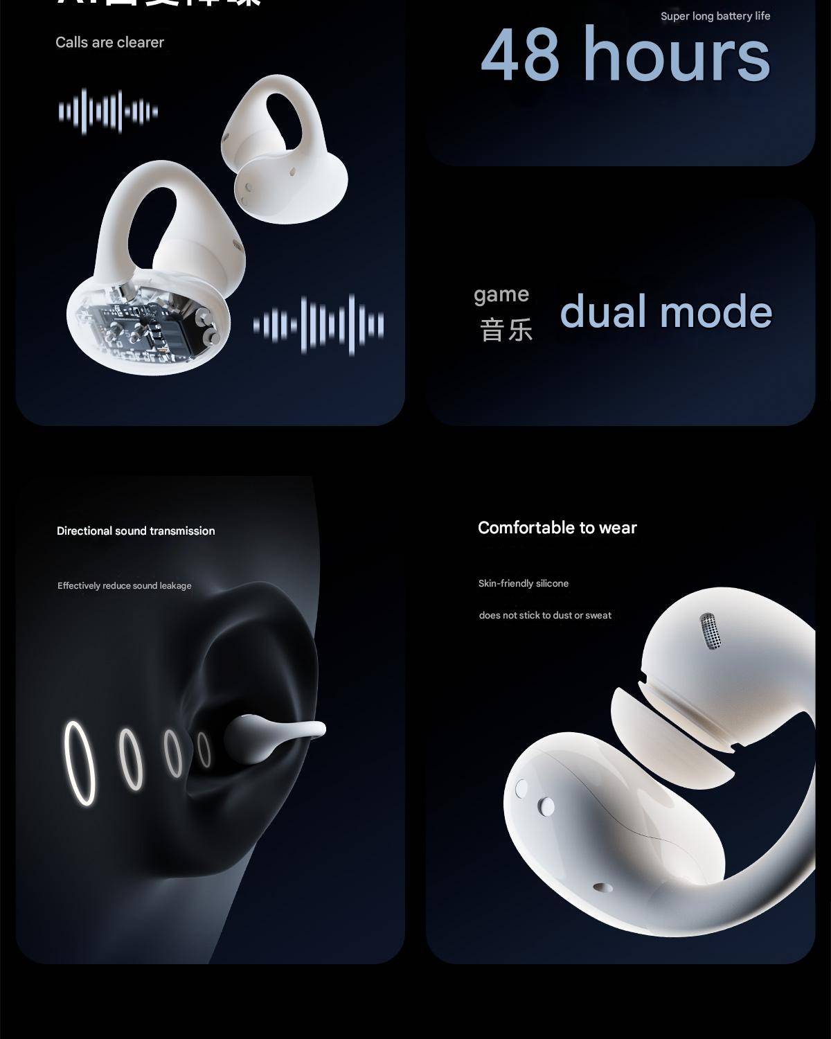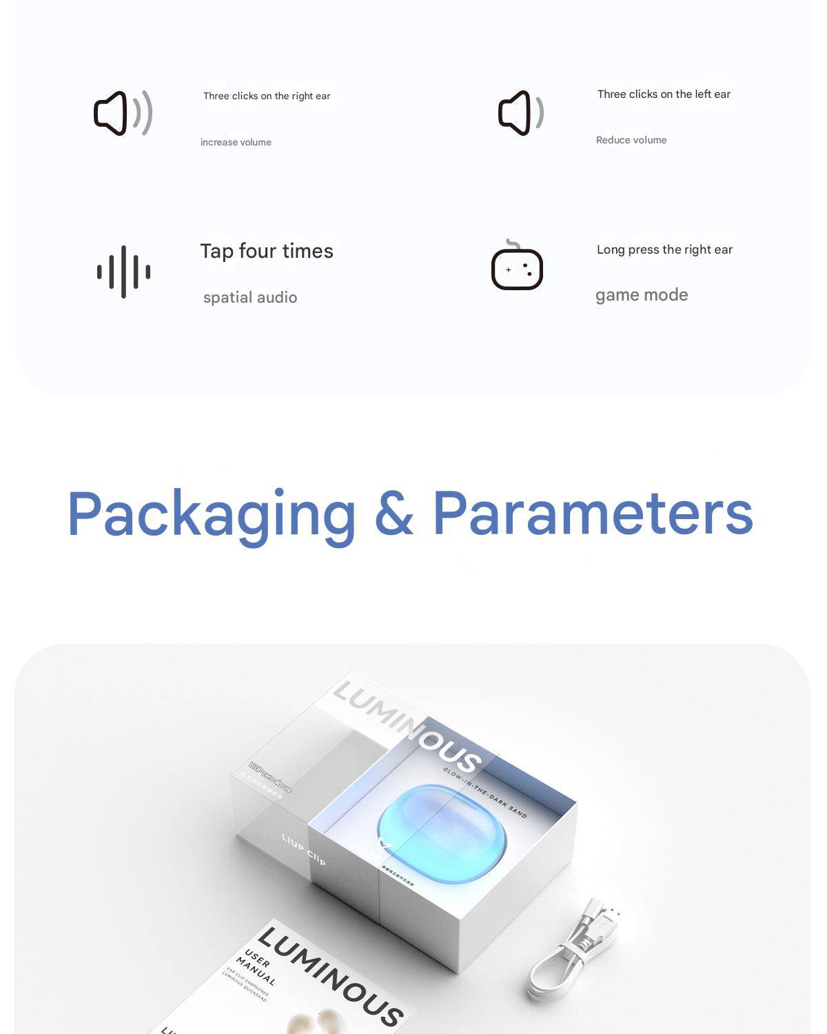 LIUP Zero Luminous Flowing Sand Ear Clip Bluetooth Headphones Open Wireless Air Bone Conduction Non-In-Ear Sports Running