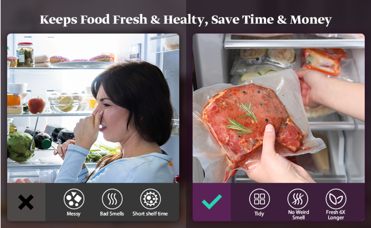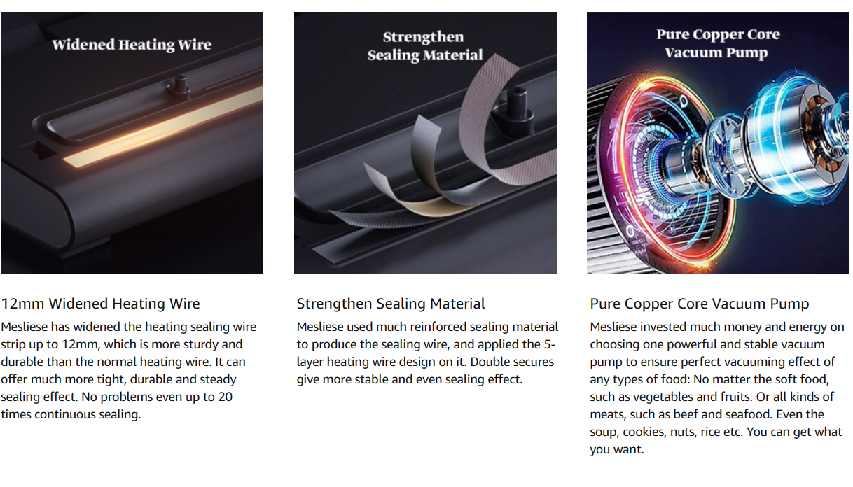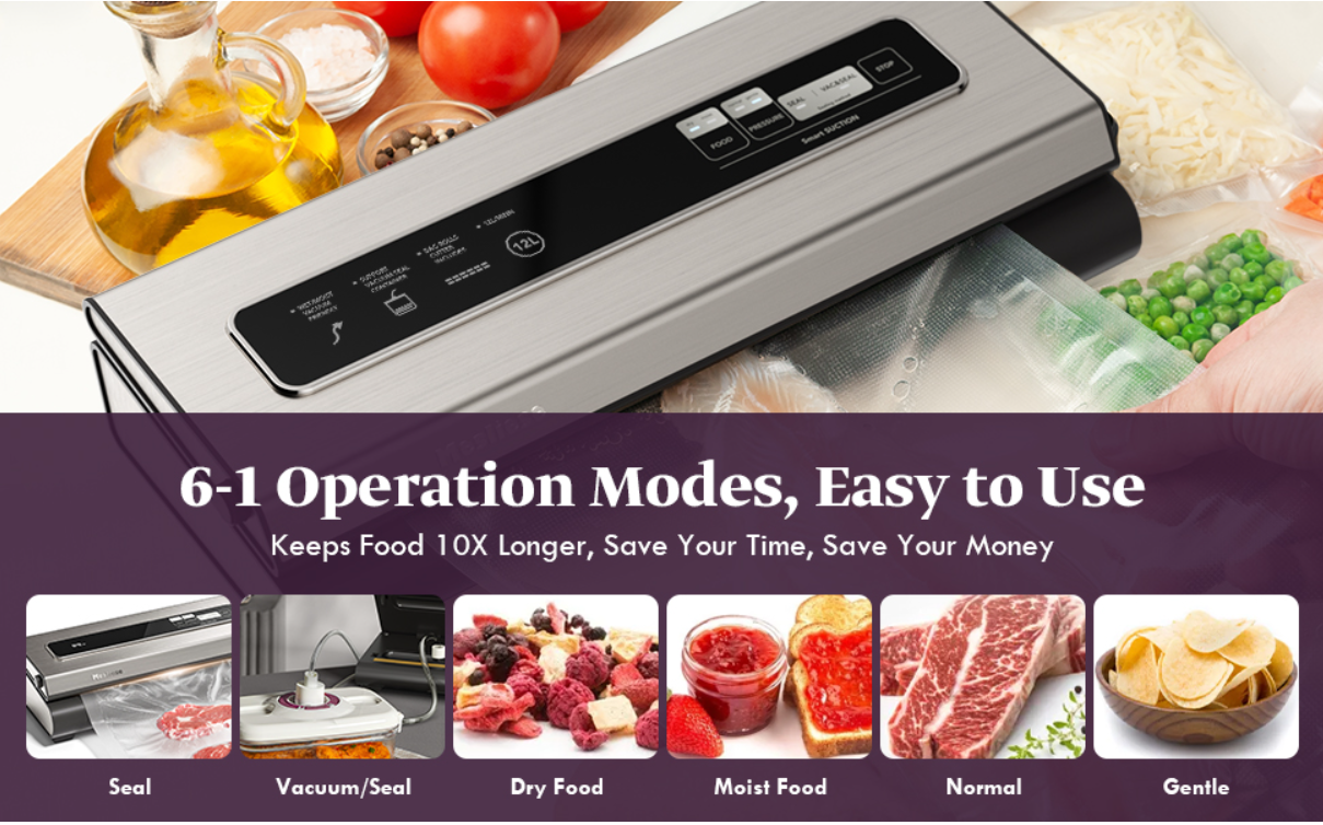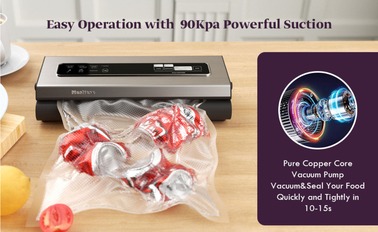 Mesliese Vacuum Sealer Machine Powerful 90Kpa Precision 6-in-1 Compact Food Preservation System Built-in Cutter, Include 2 Bag Rolls & 5 Pre-cut Bags, Widened 12mm Sealing Strip, Dry&Moist Modes Smart Suction, ETL Listed (Silver)