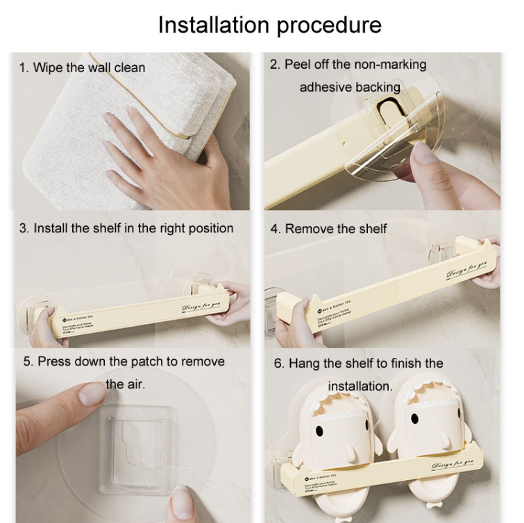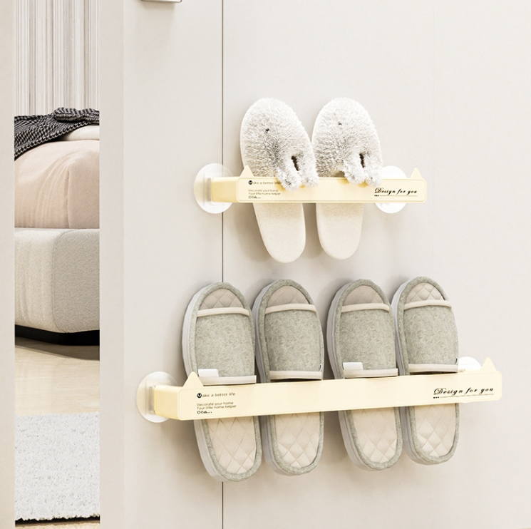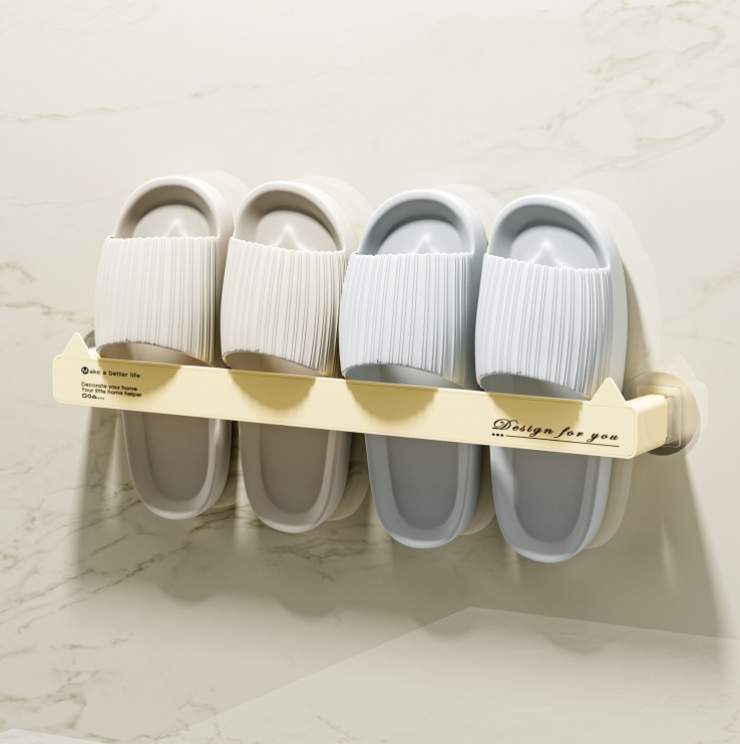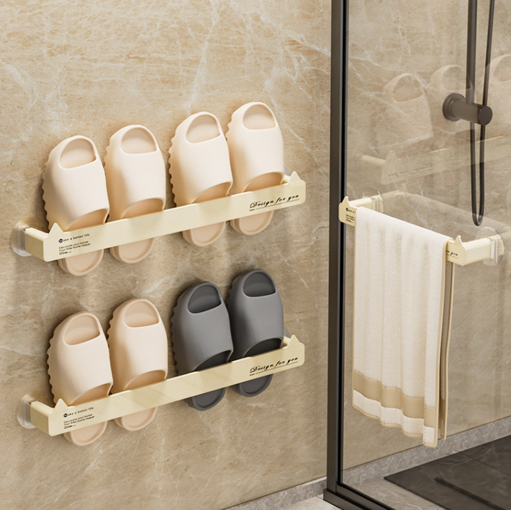 Non-marking wall-mounted bathroom hole-free slipper rack Drainage storage shelf