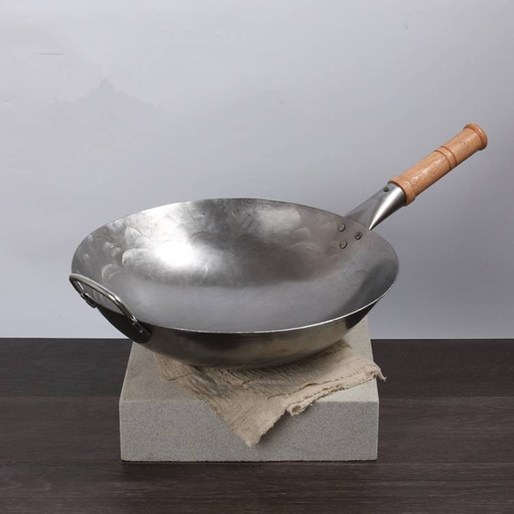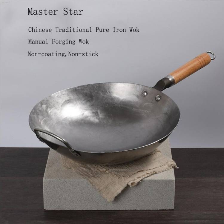 Old-fashioned Household Iron Pot Healthy Uncoated Traditional Handmade Non-stick Pot, Size:32cm, Style:With Ear