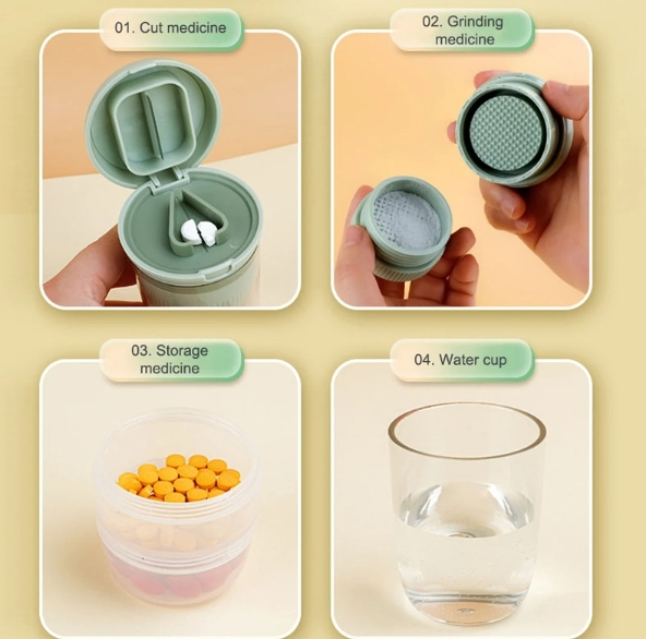 Portable 4-in-1 Mini Pill Box Multi-function Cutting Dispenser (Milk White Powder)