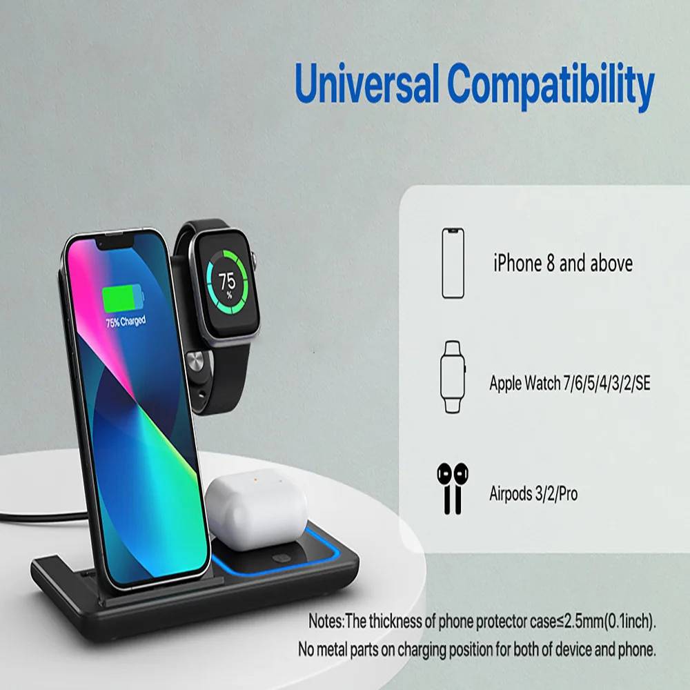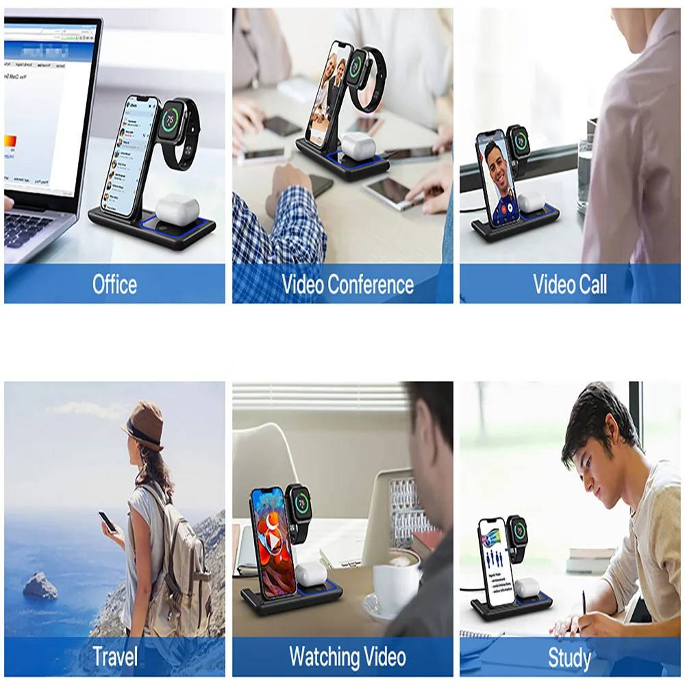 Portable Desktop Mobile Phone Wireless Charger Station 3In1 4 3 In One 3 In 1 Folding Magnetic Foldable 10W 15W Wireless Charger