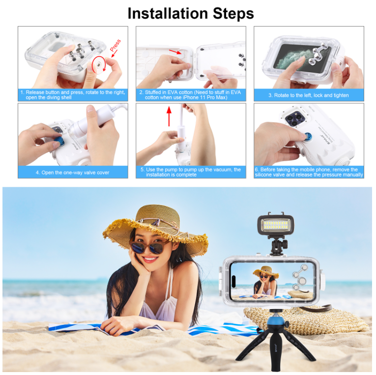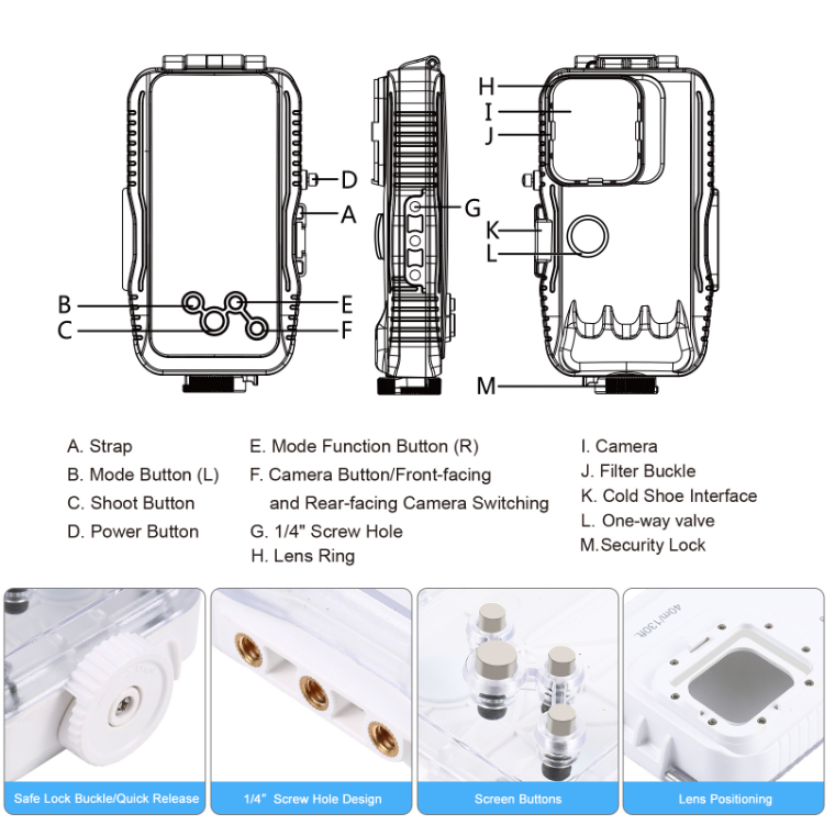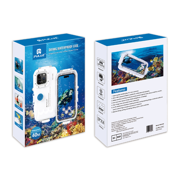 PULUZ waterproof case PC+Glass case 40m waterproof One-way valve vacuum (Colour: white)