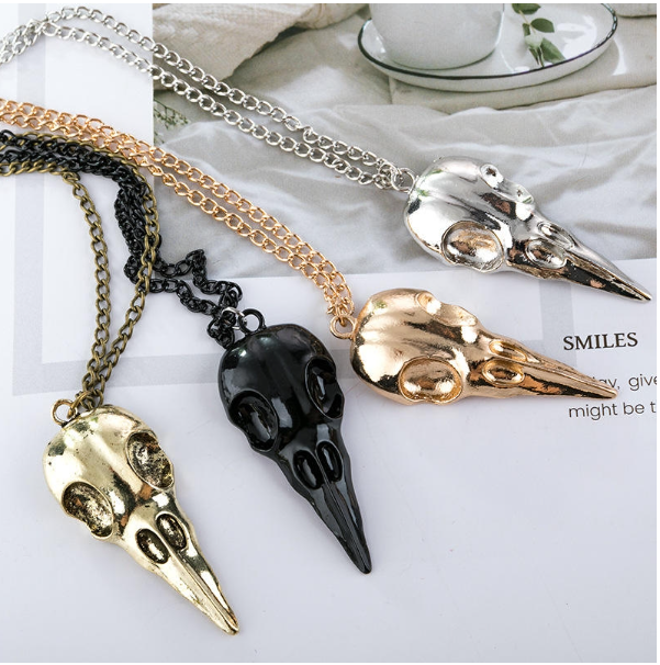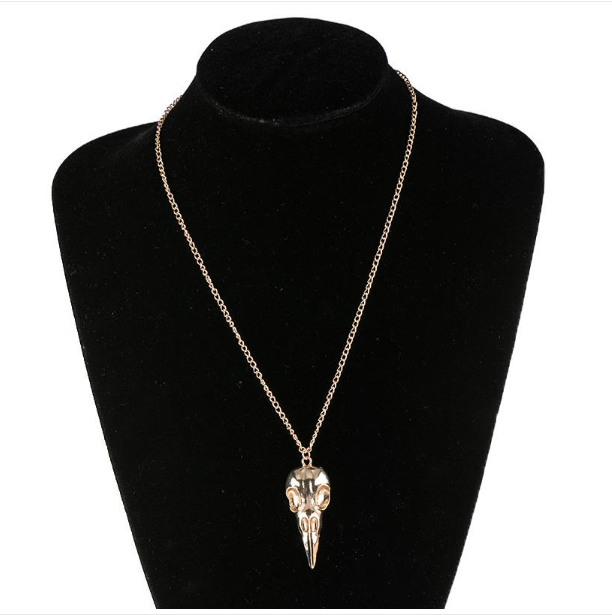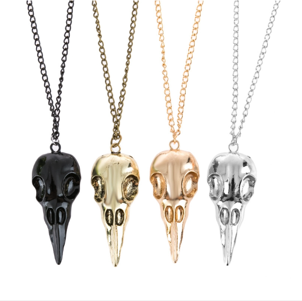 Punk 3D Metal Raven Skull Skeleton Pendant Necklace