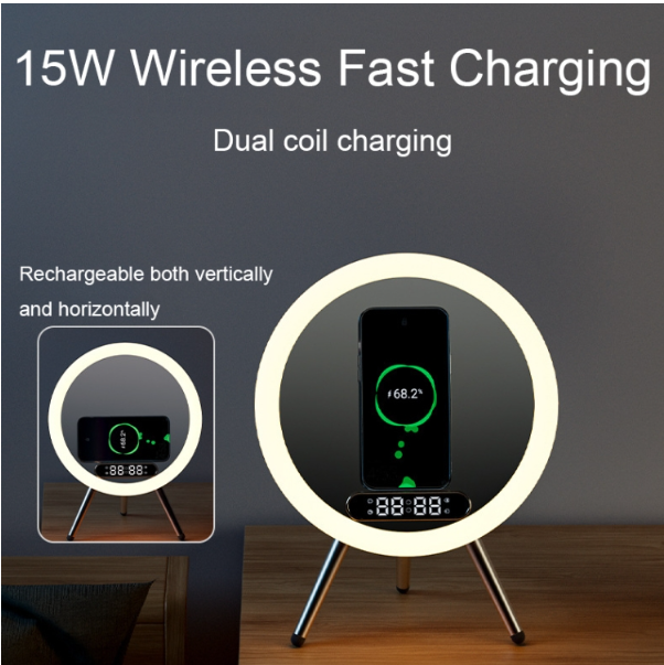 Q6 Smart Clock Display Bluetooth Speaker Fill Light Makeup Mirror with Wireless Charger