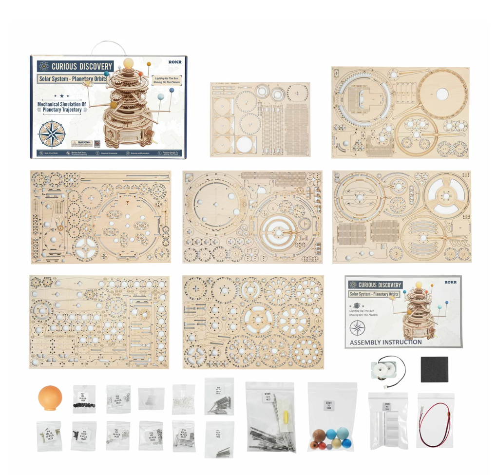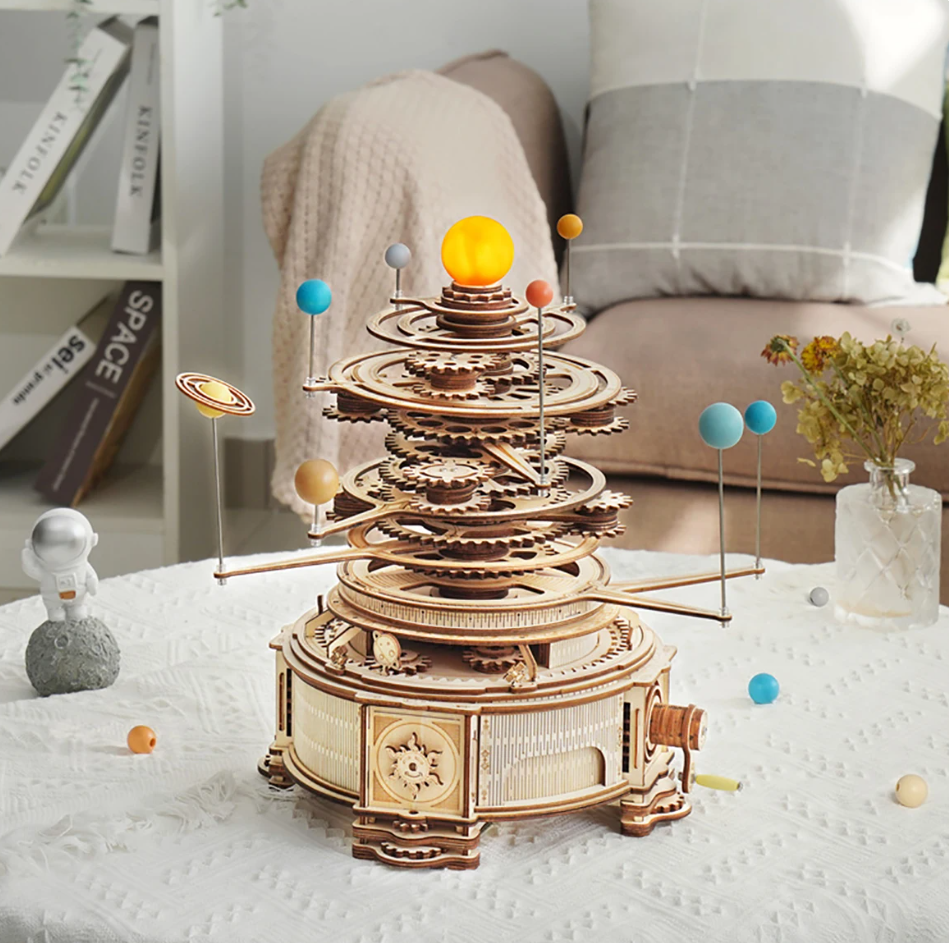 Robotime Rokr Mechanical Orrery 316PCS Rotatable DIY 3D Wooden Puzzles Model Building Block Kits Toy Gift for Teens Adult ST001
