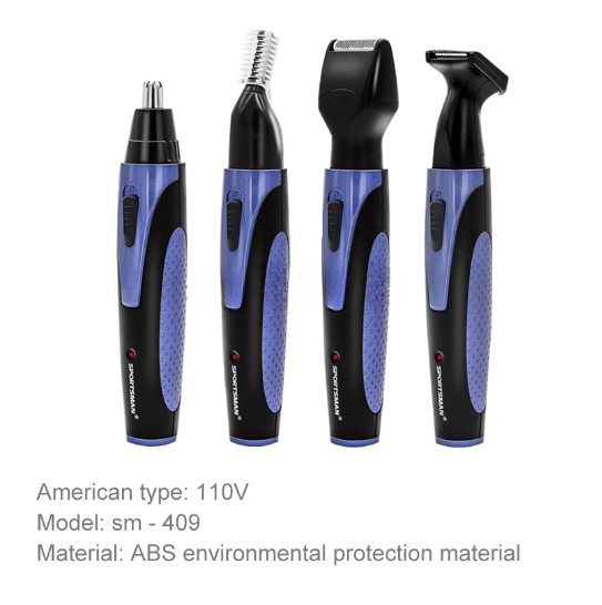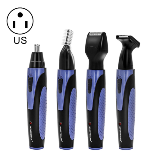 SPORTSMAN Four-in-one Electric Rechargeable Ear Nose Trimmer Beard Face Shaver Eyebrows Hair Trimmer for Men, US Plug(blue 110v)