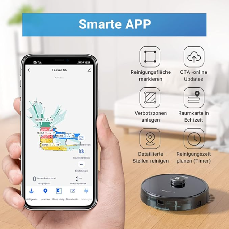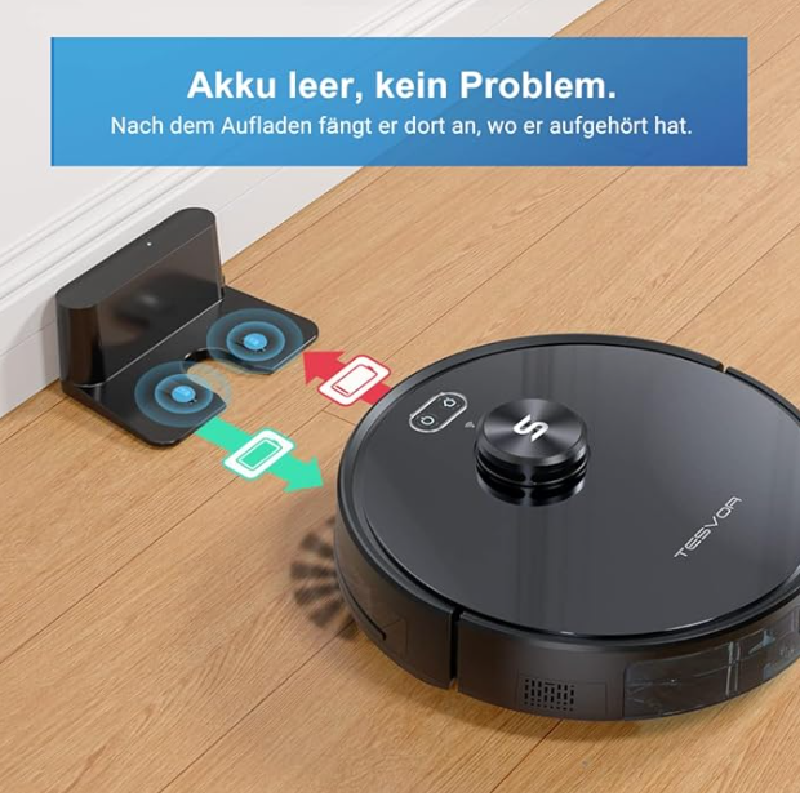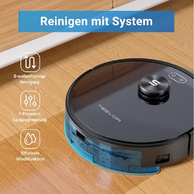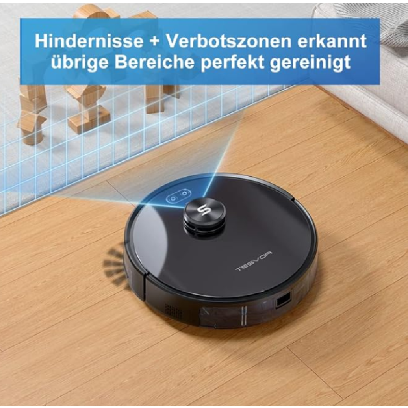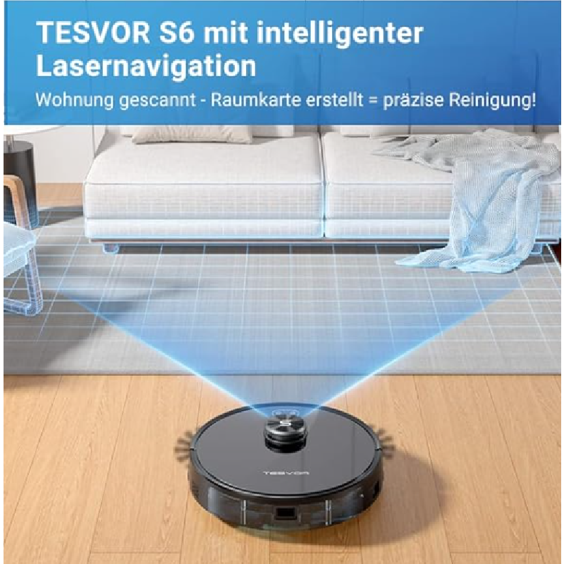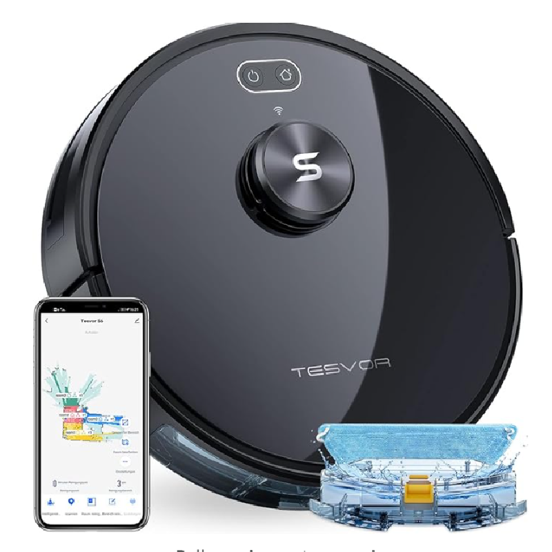 Tesvor Robot Vacuum Cleaner, S6 Suction Mop Robot with Laser Navigation, Super Strong 2700 PA Robot Vacuum Cleaner, Run Time 120 Minutes, Allergens, Pet Hair Removal App, Voice Control and Prohibition Zones