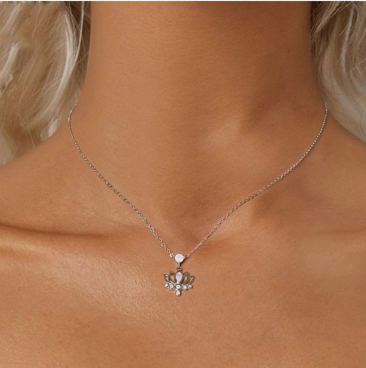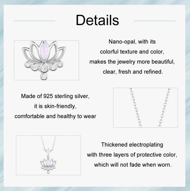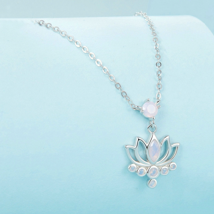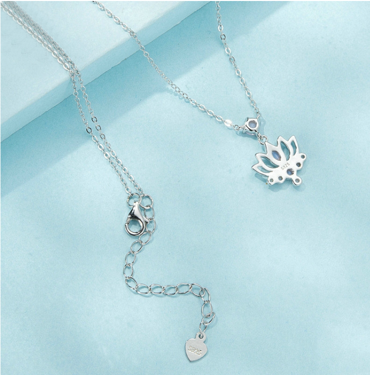 S925 sterling silver platinum-plated lotus women's necklace (SCN520)