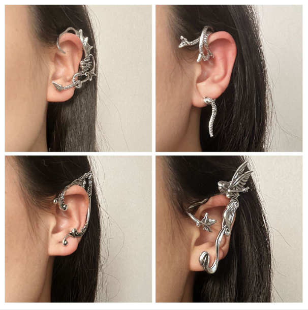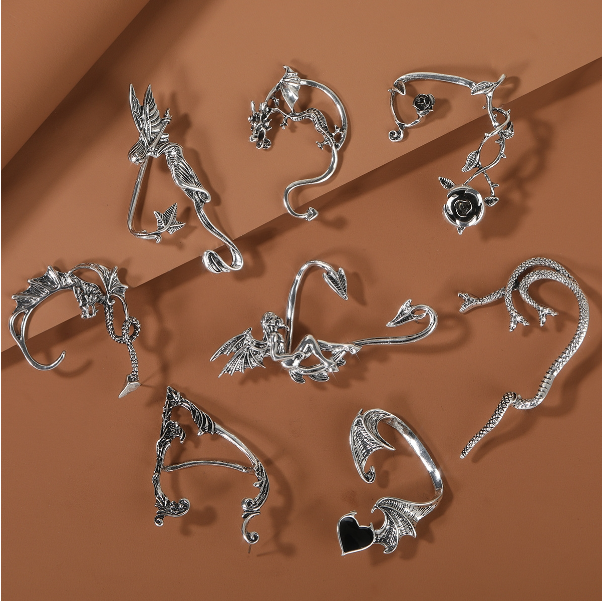 Vintage Elf Wings Ear Clip Dark Punk Style Devil Earrings