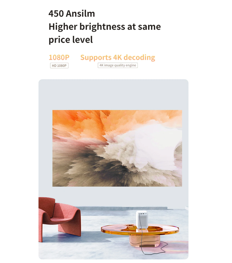 Wanbo T4 Projector Android 9.0 Full HD 4K Projector 1920*1080P 450 Ansi Lumens Auto Focus Keystone Correction Home Outdoor Movie